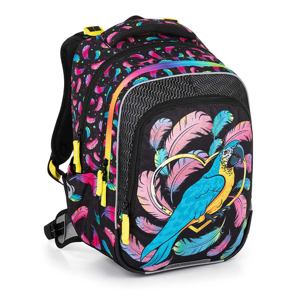 Veselý batoh s papagájom pre dievčatká od 1. do 3. triedy. Váži len 0,94 kg, a pritom je priestranný. Má tri veľké priehradky a organizér na mobilný telefón, peňaženku a iné cennosti. Stojí na plastových nožičkách a v tme svieti pomocou reflexných prvkov. Nový chrbtový systém s nastaviteľným hrudným pásom a ľahkým odnímateľným bedrovým pásom má zdravotný certifikát. Prečo je školský batoh Beta výbornou voľbou pre mladú školáčku Je veľmi ľahký - váži len 0,94 kg. Má tri priestranné priehradky. Do hlavného sa zmestia veľké školské zakladače, ako aj učebnice a zošity formátu A4. Hlavná komora má kompresné vrecko s elastickými bočnými popruhmi na zakladače A4 a veľké učebnice. Pomáha ťahať a držať ťažké pomôcky čo najbližšie k chrbtu, takže školák alebo školáčka má ťažisko blízko chrbtice a pri chôdzi sa nehrbí. Predné vrecko má praktický organizér na mobilný telefón, ceruzky, slúchadlá a peňaženku. Na čiernu pracku v prednom vrecku môžete pripevniť sieťovanú tašku. Možno na peniaze alebo slúchadlá. Do vrecka na zips sa zmestí powerbanka. Nabíjací kábel stačí pretiahnuť cez otvorenú rolku k telefónu umiestnenému v organizéri. Po stranách sú vrecká na fľašu s nápojom alebo dáždnik. Ergonomicky tvarovaný chrbát a priedušný bedrový pás podporujú správne držanie tela. Pružný hrudný pás napomáha stabilite batohu na chrbte. Zabraňuje skĺznutiu ramenných popruhov z ramien. Ramenné popruhy a chrbtový systém sú mäkko polstrované. Popruhy sú nastaviteľné pomocou hornej a dolnej plastovej pracky. Dĺžku je potrebné upravovať podľa toho, ako školáčka rastie. Konce popruhov sú magnetické. Aby sa netrblietali, stačí ich pomocou magnetu pripnúť na plastovú pracku. Pierka na batohu sú posiate trblietkami Záruka 3 roky V zadnej komore je všitá menovka. Sieťovaná taška a držiak na kľúče nie sú súčasťou balenia. Môžete si ich pridať do nákupného košíka. Nájdete ich v kategórii príslušenstvo.