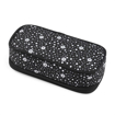 Seznamte se Supernovou, černý batoh s bílými květy. Má anatomicky tvarovaná záda a měkoučké ramenní popruhy. Váží jenom 0,7 kg. Díky tomu si do něj školačka může nabalit učebnice i pořádnou svačinu. Všechno se vejde do tří prostorných přihrádek včetně polstrované kapsy na notebook a dvou bočních sítěk. Samozřejmostí jsou reflexní prvky a vychytávky pro lepší organizaci. Batoh bude školačce věrným pomocníkem od 4. třídy celou základku. Proč je Supernova správnou volbou pro vaši školačku Má anatomicky tvarované a měkce polstrované ramenní popruhy i zádovou část. Všechny materiály jsou prodyšné. Je jedním z nejlehčích batohů na trhu, váží jenom 0,7 kg (přitom není ošizen o důležité anatomické ani funkční prvky). Ramenní popruhy mají nastavitelnou délku. Oproti původními modelu batohu jsme je zúžily, aby byly pro malé školačky ještě pohodlnější než před tím. K batohu jsme přidali taky hrudní pásku, která pomáhá udržet ramenní popruhy na správném místě. Batoh díky ní nesklouzává z ramenou. Do hlavní komory se vejdou školní desky i učebnice formátu A4. Batoh má taky kapsu na notebook o velikosti až 15″. Další místo na sešity A4 a penál je v prostřední kapse. V přední kapse je praktický organizér na mobil, tužky, sluchátka a peněženku. Na černou přezku v přední kapse můžete školačce připnout síťovaný sáček. Třeba na peníze nebo sluchátka. Do kapsičky na zip se vejde power banka. Nabíjecí kabel stačí otevřeným rožkem protáhnout k telefonu umístěnému v organizéru. Dno je z vnitřní části polstrované podšívkou a z vnější části potažené látkou 600 D polyester – nehrozí, že by se spodní část začala prodírat. Nosnost batohu je 10 kg a záruka 3 roky. O bezpečné cesty ze školy a do školy se postarají reflexní prvky. Na obou stranách je síťovaná kapsa na láhev s vodou. V zadní komoře je všitá jmenovka. Školačka si na ni může lihovým či smývatelným fixem napsat jméno a kontakt pro případ, že by batoh ztratila. Všechny použité materiály jsou zdravotně nezávadné, splňují normy EU. Sladěný penál a školní výbava je kompletní Má jednu velkou komoru a dvojitou přepážku. Na přepážce je 20 gumových úchytů na pera, pastelky i kružítko. Přepážku lze sepnout gumičkou se suchým zipem. Uvnitř pouzdra je jedna zazipovaná kapsa a dvě menší kapsičky na karty. Celé pouzdro se zapíná zipem s jedním taháčkem. Zip je kvalitní, neulamují se mu zoubky ani nedrhne v ohybech. Proč budeš s tímto setem zářit jako super hvězda Jednoduchá kombinaci černé s bílými puntíky a tyrkysovými detaily je jako vyšitá pro mladou slečnu. Navíc bude ladit ke každému outfitu, který si vezmeš na sebe. Do tří velkých kapes se vejde všechno. Učení, svačina i další věci, o kterých by rodiče řekli, že do školy nepatří, ale ty se prostě musíš kamarádkám pochlubit. Nošení těžkých učebnic a sešitů nebude taková otrava, protože batoh má příjemné polstrování. Nebude tě tlačit na zimní bundě ani se v létě nepříjemně zařezávat do holých ramen. Do přední kapsy si můžeš připnout jednoduchou fíčuru – samonavinovací karabinu na klíče nebo školní čip. Díky navíjecímu systému už nebudeš lovit v baťohu to, co potřebuješ mít pořád po ruce. Do pouzdra si můžeš porovnat tužky, pastelky, nůžky i zvýrazňovače. Díky tomu budeš vždycky čím vyzdobit sešity a zápisy z hodin.