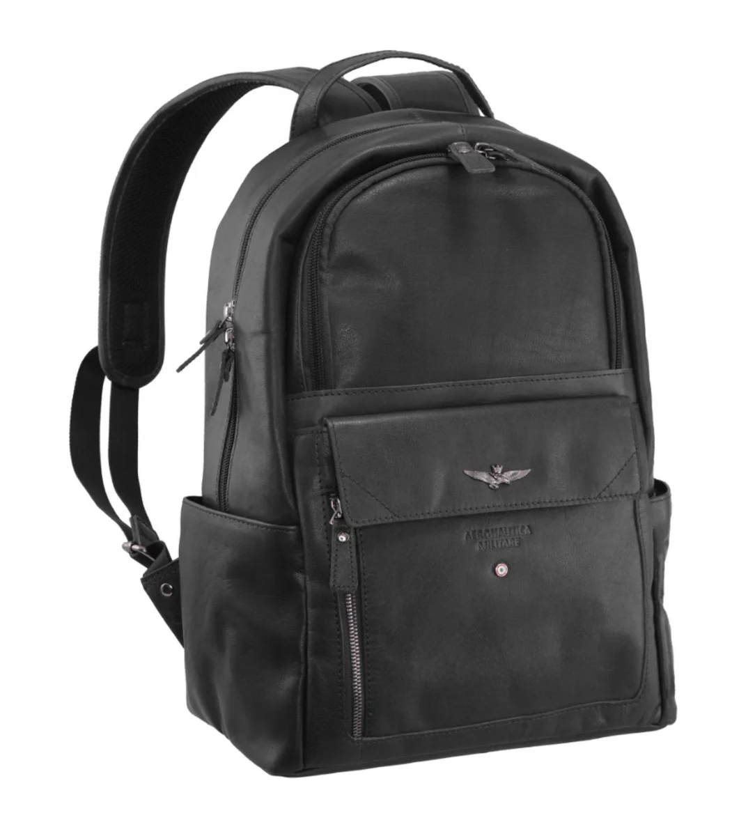 Batoh classic kožený v oblíbené černé barvě italské značky Aeronautica Militare série Vintage, vhodný pro manažery i muže, kteří chtějí být elegantní a potřebují mít sebou notebook.