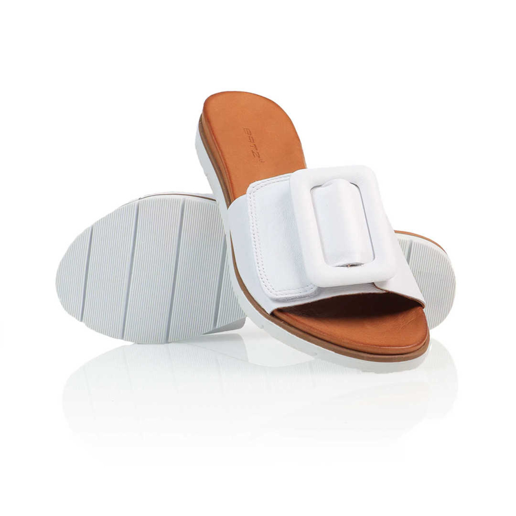 Zvršok papučiek je vyrobený z kvalitnej kože, ktorá zaisťuje odolnosť a pohodlie. Väčšia veľkosť pracky podčiarkuje elegantný vzhľad a zároveň zaisťuje pohodlné nosenie, ktoré sa prispôsobí tvaru chodidla. Anatomické tvarovanie podporuje zdravie chodidla a zvyšuje pohodlie pri každodennom nosení, aby bol každý váš krok pohodlný.