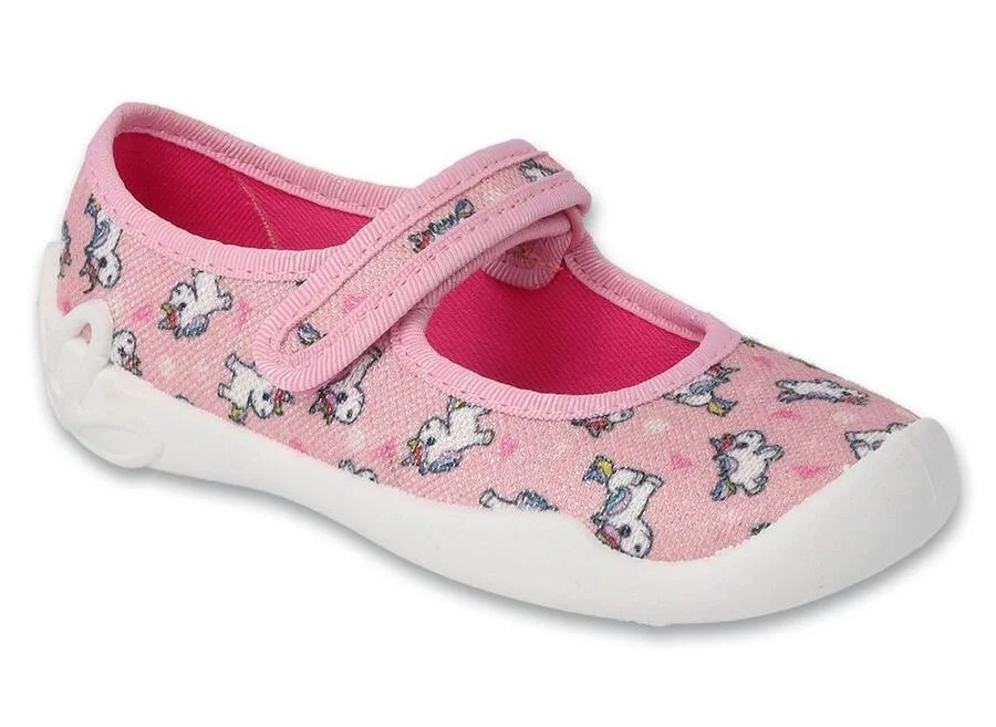 Lehké a pohodlné přezůvky určené pro samostatné předškoláky. Holčička si je dokáže nasadit i sundat sama bez pomoci maminky a tatínka. Díky nápaditým hravým vzorům se hodí jak k šatům, tak ke sportovním šortkám. Balerínky jsou vyrobeny z prodyšných tkanin. Mají prodyšnou podrážku. To vše znamená, že se v nich nohy nadměrně nepotí, což přispívá ke zvýšenému pohodlí dítěte. Uvnitř byla použita měkká vložka Soft-B System, díky které jsou boty Befado Blanca velmi pohodlné a starají se o nožičku po celou dobu pobytu dítěte ve školce. • Bačkůrky Befado Blanca odpovídají veškerým nárokům na zdravou obuv • Vyztužená zadní část boty se postará o skvělou stabilitu paty • Nízký klínový podpatek tlumí nárazy v oblasti paty • Měkká a elastická stélka • Dostatek místa pro prsty - široké špičky bot dopřejí prstům volný pohyb • Lehká a pružná podrážka působí proti únavě nožiček • Vysoce prodyšný materiál a odvětraná podrážka zajišťují odvod nadměrné vlhkosti • Zapínání na suchý zip, díky kterému se bota přizpůsobí výšce nártu a tvaru chodidla • Vhodné na celodenní nošení doma i do školky • Materiálové složení – horní část vysoce kvalitní textilie, spodní část (podešev): vysokojakostní materiál PVC • Technologie: Dýchající podešev, měkká a elastická stélka, Soft-B systém, Systém ochrany prstů Délka vnitřní stélky: • velikost 25 - 16 cm • velikost 26 - 16,6 cm • velikost 27 - 17,2 cm • velikost 28 - 17,9 cm • velikost 29 - 18,5 cm • velikost 30 - 19,1 cm Délka vnitřní stélky představuje rozměr vložky uvnitř obuvi. Pro pohodlné užívání doporučujeme při výběru přidat 5-8 mm k naměřené délce chodidla a následně zvolit správnou velikost obuvi