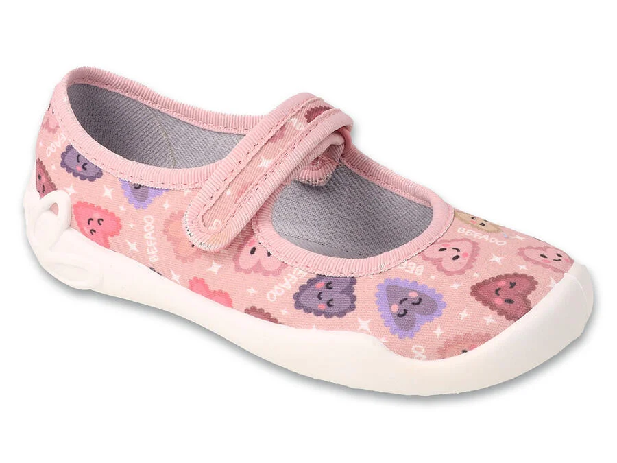 Lehké a pohodlné přezůvky určené pro samostatné předškoláky. Holčička si je dokáže nasadit i sundat sama bez pomoci maminky a tatínka. Díky nápaditým hravým vzorům se hodí jak k šatům, tak ke sportovním šortkám. Balerínky jsou vyrobeny z prodyšných tkanin. Mají prodyšnou podrážku. To vše znamená, že se v nich nohy nadměrně nepotí, což přispívá ke zvýšenému pohodlí dítěte. Uvnitř byla použita měkká vložka Soft-B System, díky které jsou boty Befado Blanca velmi pohodlné a starají se o nožičku po celou dobu pobytu dítěte ve školce. • Bačkůrky Befado Blanca odpovídají veškerým nárokům na zdravou obuv • Vyztužená zadní část boty se postará o skvělou stabilitu paty • Nízký klínový podpatek tlumí nárazy v oblasti paty • Měkká a elastická stélka • Dostatek místa pro prsty - široké špičky bot dopřejí prstům volný pohyb • Lehká a pružná podrážka působí proti únavě nožiček • Vysoce prodyšný materiál a odvětraná podrážka zajišťují odvod nadměrné vlhkosti • Zapínání na suchý zip, díky kterému se bota přizpůsobí výšce nártu a tvaru chodidla • Vhodné na celodenní nošení doma i do školky • Materiálové složení – horní část vysoce kvalitní textilie, spodní část (podešev): vysokojakostní materiál PVC • Technologie: Dýchající podešev, měkká a elastická stélka, Soft-B systém, Systém ochrany prstů Délka vnitřní stélky: • velikost 25 - 16 cm • velikost 26 - 16,6 cm • velikost 27 - 17,2 cm • velikost 28 - 17,9 cm • velikost 29 - 18,5 cm • velikost 30 - 19,1 cm Délka vnitřní stélky představuje rozměr vložky uvnitř obuvi. Pro pohodlné užívání doporučujeme při výběru přidat 5-8 mm k naměřené délce chodidla a následně zvolit správnou velikost obuvi