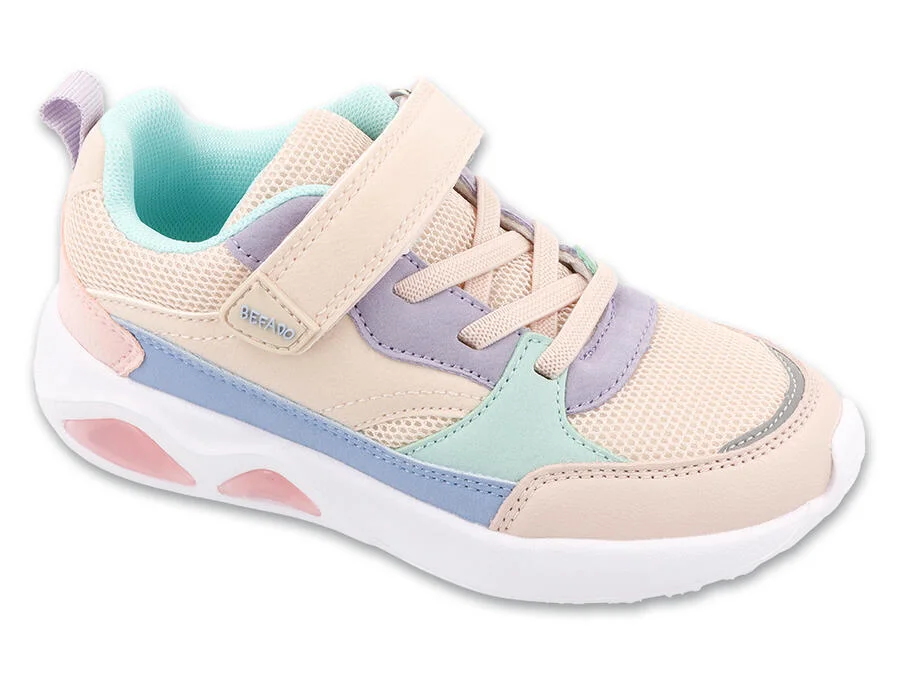 Ultralehké Dětská sportovní obuv SKIP BEFADO Dětská sportovní obuv Befado je ultralehká a pohodlná obuv určená pro každodenní aktivity dětí. Je ideální na hraní, procházky a další venkovní aktivity. Sportovní design a moderní barvy dodávají botám atraktivní vzhled, který doplňuje dětský styl. Konstrukce boty zajišťuje bezpečné uchycení díky zapínání na suchý zip a klasickým tkaničkám, což usnadňuje nazouvání a nastavení. Podešev je navržena tak, aby tlumila došlap a izolovala nohu od země, čímž zvyšuje pohodlí při chůzi a běhu. Prvky zabudované do podešve dodávají botě moderní charakter a zdůrazňují sportovní styl modelu.