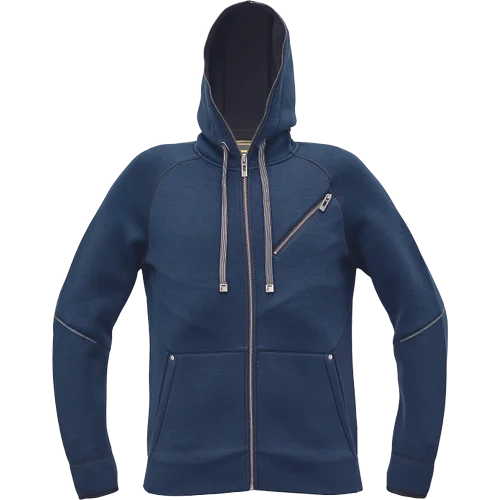 • celopropínací mikina s kapucí • zapínání na zip je prodlouženo až po špičku kapuce • obvod kapuce lze upravit pomocí vložené tkanice • 2 postranní kapsy, 1 náprsní kapsa na zip • reflexní detaily