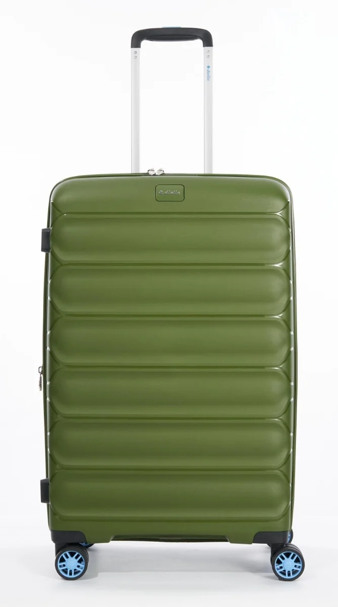 Moderní ultralehký plastový kufr 66 cm italské značky Dielle v zelené barvě s prolisy proužků.