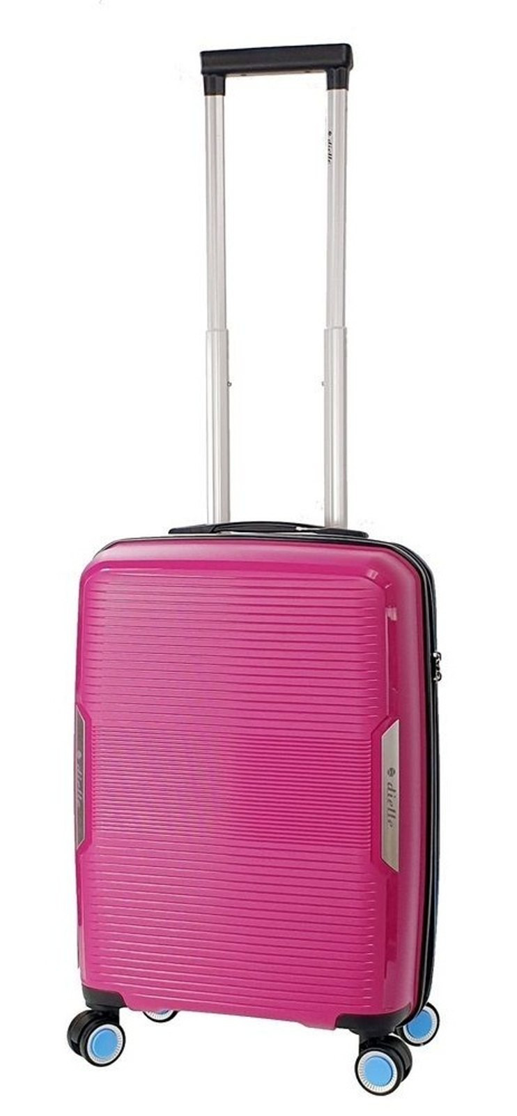 Moderní ultralehký plastový kufr 55 cm italské značky Dielle ve fuchsiové barvě s prolisy proužků.