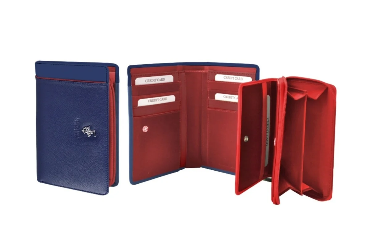 Stylová kožená combi peněženka pro dámy značky Beverly Hills Polo Club série Piping v modré barvě. Stylová dámská peněženka BHPC Piping Combi zaujme na první pohled kombinací dvou barev a jemným kontrastním lemováním. Moderní design podtrhuje decentní logo značky, které dodává peněžence nádech nadčasové elegance. Uvnitř nabízí přehledné uspořádání – několik přihrádek na platební karty, kapsy na doklady i dostatek prostoru na bankovky. Samostatná zipová část je prakticky řešená pro mince, takže už žádné lovení drobných po kabelce. Zapínání na druk drží vše bezpečně na svém místě. Peněženka je ideální pro ženy, které chtějí mít pořádek a zároveň si potrpí na styl. Hodí se do kabelky i batohu a díky kvalitnímu zpracování zvládne každodenní používání bez kompromisů. Elegantní kousek, který není jen doplňkem – ale každodenním parťákem.
