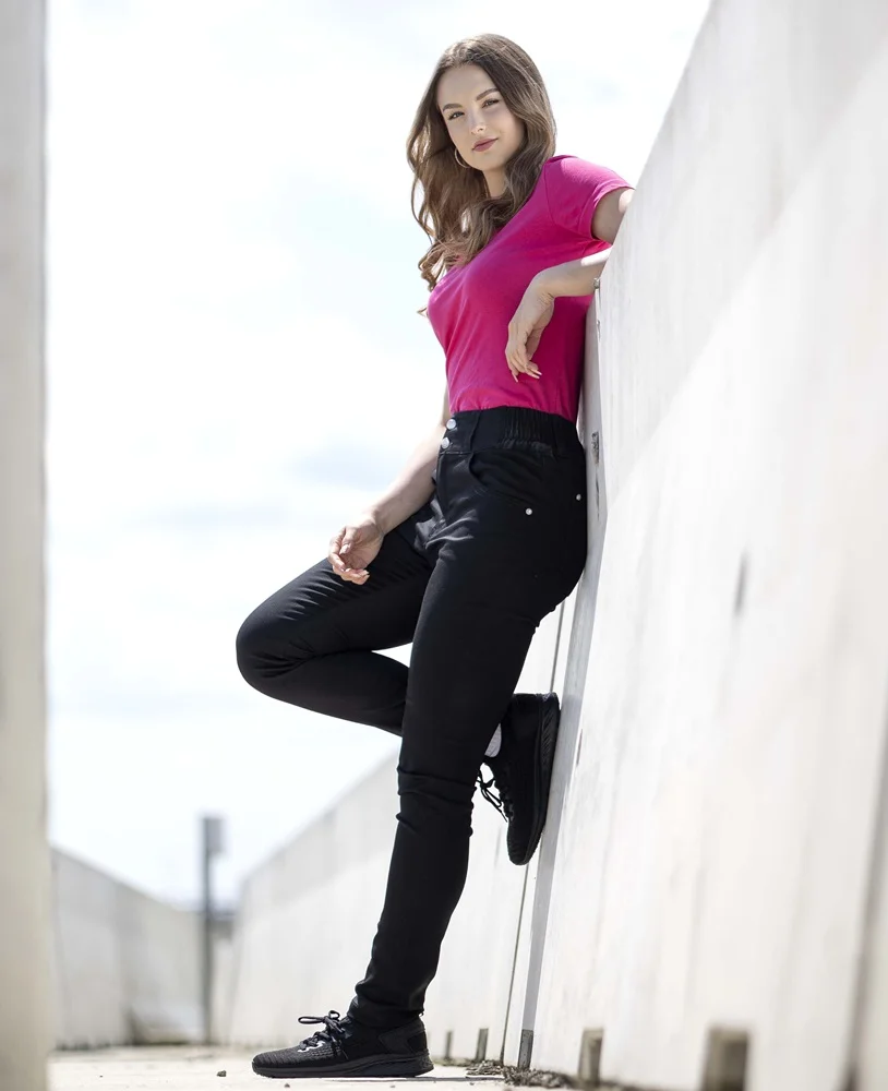 • exkluzivní dámské elastické kalhoty se zvýšeným pasem vyvinuté speciálně pro ženy