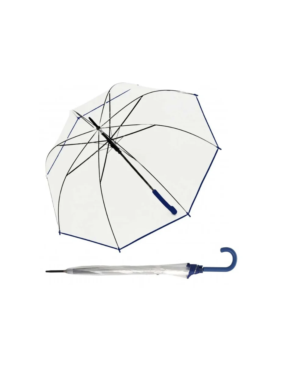 DERBY Hit Long Automatik Transparent - průhledný dámský vystřelovací holový deštník modrá