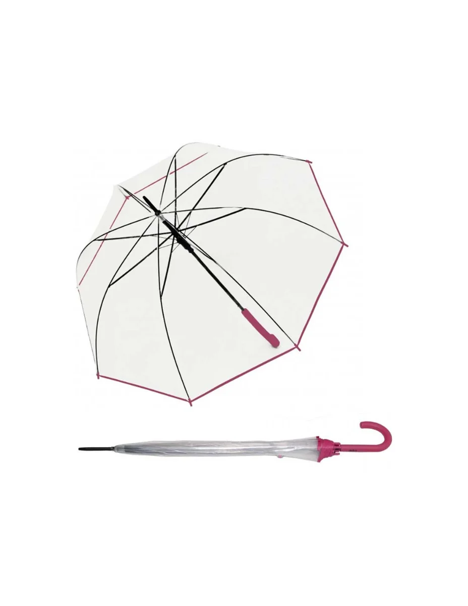 DERBY Hit Long Automatik Transparent - průhledný dámský vystřelovací holový deštník růžová