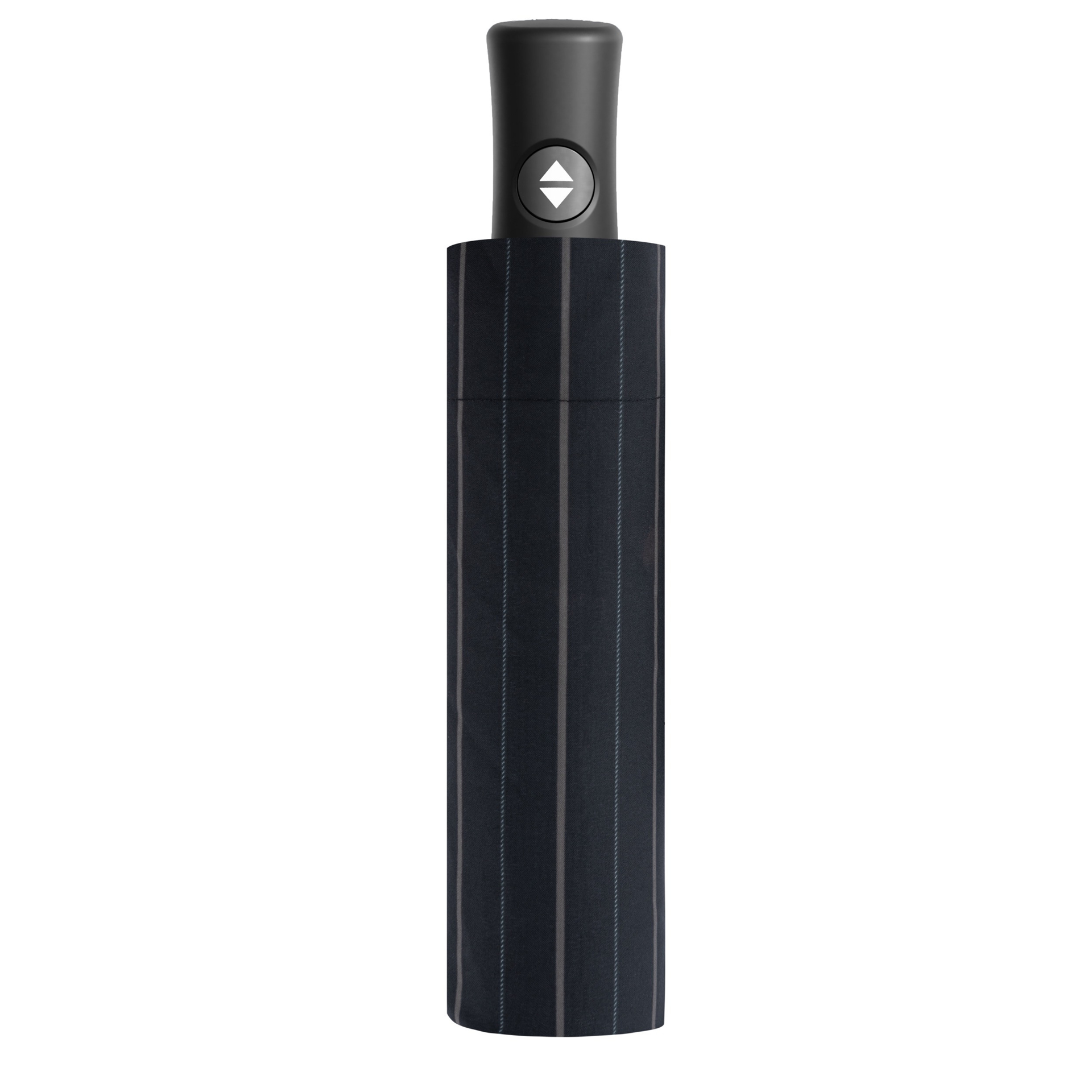 Pánský plně automatický deštník. Kostra deštníku je vyrobena v kombinaci materiálů sklolaminát a ocel zaručuje pevnost a stabilitu. Při otočení deštníku nedojde k jeho poškození. Odolný proti korozi. Polyesterový potah je odolný proti změnám vlhkosti a teplot, nesráží se.