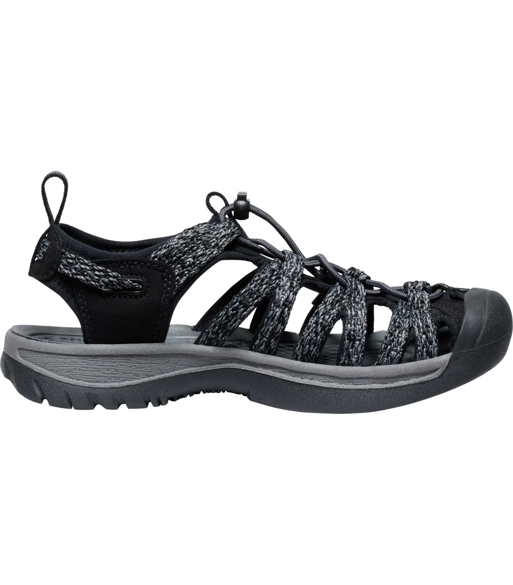 Model KEEN Whisper vyniká nízkou hmotnosťou, takže sa príjemne nosí aj pri dlhších prechádzkach. Tvar vstupu do sandále umožňuje rýchle a pohodlné prezutie, čo oceníte nielen na dovolenke, ale aj pri každodennom používaní. Praktické sťahovanie pomocou pružnej šnúrky s brzdičkou zaistí ľahké dotiahnutie a dobré prispôsobenie nohe.
