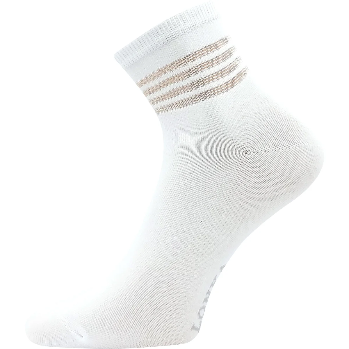 Dámske elegantné ponožky Lonka® FASKETA si zamilujete hneď, ako si ich obujete. Ponožky zdobia jemné priehľadné prúžky. Pre maximálne pohodlie majú medicínsky nestrapkajúci lem, ktorý neškrtí. Kvalitné ponožky sú vyrobené z hladkej pleteniny, pletené na 200ihlovom stroji, špička je spojená plochým reťazovým švom, ktorý vôbec necítite. Bavlnené ponožky sú vhodné na bežné nosenie doma aj v práci.