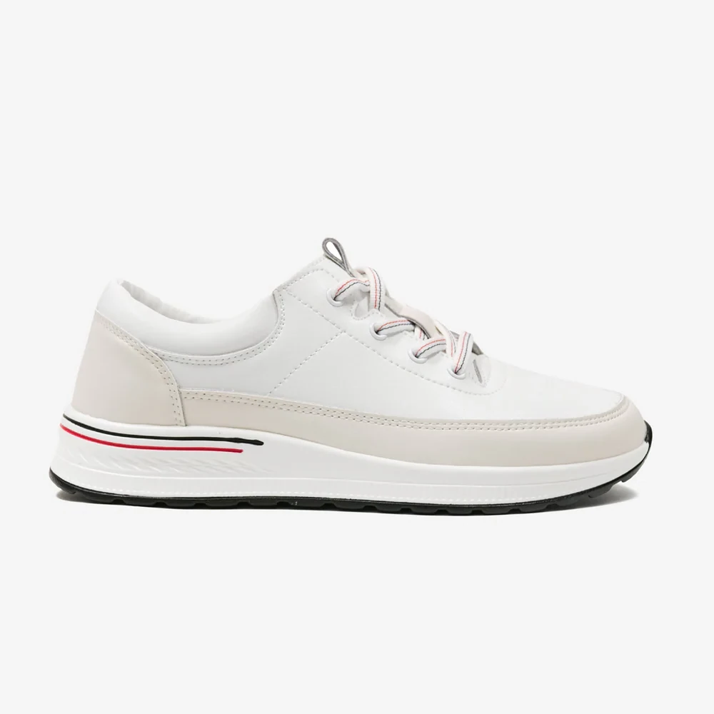 Dámske tenisky Looke ISADORA zaujmú na prvý pohľad svojou jemnou a nadčasovou kombináciou krémovej a béžovej farby , ktorú štýlovo dopĺňajú červené akcenty na šnurovanie a podrážke . Výsledkom je elegantný, čistý a moderný vzhľad, ktorý ľahko zladíte s každodenným aj voľnočasovým outfitom.
