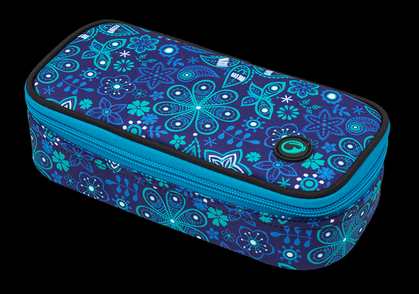 Jednokomorový, prostorný penál s dvojitou přepážkou – na školní pomůcky Pružné úchyty až na 20 tužek či pastelek Jedna vnitřní kapsička na zip a dvě menší kapsičky např. na kartičky Zapínání na zip