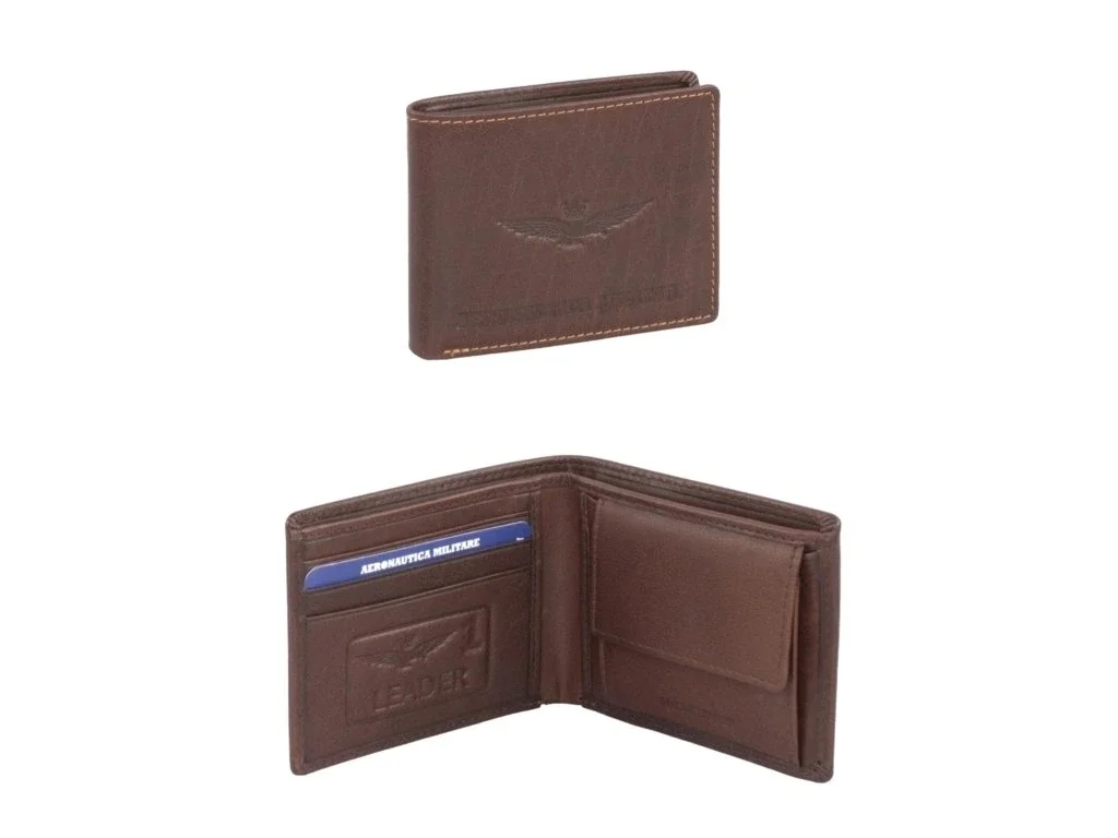 Pánská kožená peněženka italské prestižní značky Aeronautica Militare série New Eagle v hnědé barvě. Vyrobeno z vysoce kvalitní kůže s vintage efektem – tyto peněženky z řady New Eagle od značky Aeronautica Militare jsou ideálním doplňkem pro ty, kteří hledají styl i praktičnost. Na přední straně vyniká reliéfní logo s křídly, které dodává peněžence výrazný a elegantní charakter. Kontrastní švy a ruční zpracování podtrhují důraz na detail.