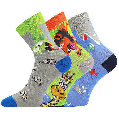 Detské "trendy" módne ponožky s veselými obrázkami zvierat a hmyzu, ktoré vďaka elastanu perfektne sedia a držia tvar. Navyše s protišmykovou ABS stielkou.