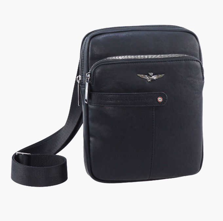 Štýlová ľahká krížová taška cez rameno alebo crossbody na osobné veci prestížnej značky Aeronautica Militare série Fly vo veľkosti L v čiernej farbe. Tašku si obľúbite vďaka jej pohodlným rozmerom, do ktorej sa zmestia všetky vaše potrebné veci, ako je peňaženka, mobilný telefón, doklady a kľúče.