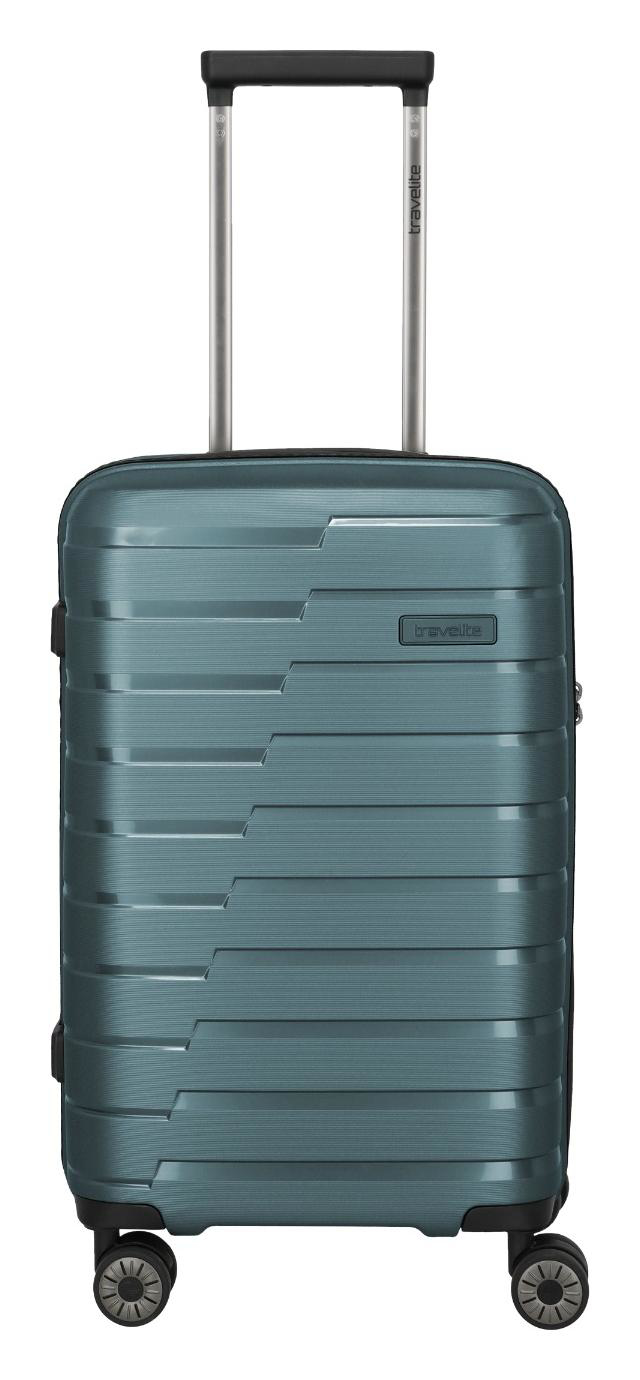 Elegantní příruční kufr na čtyřech kolečkách z odolné skořepiny vybavený integrovaným TSA zámkem. Rozměry 55x35x25 cm, splňující limity pro příruční zavazadla např. aerolinek KLM nebo Air France.