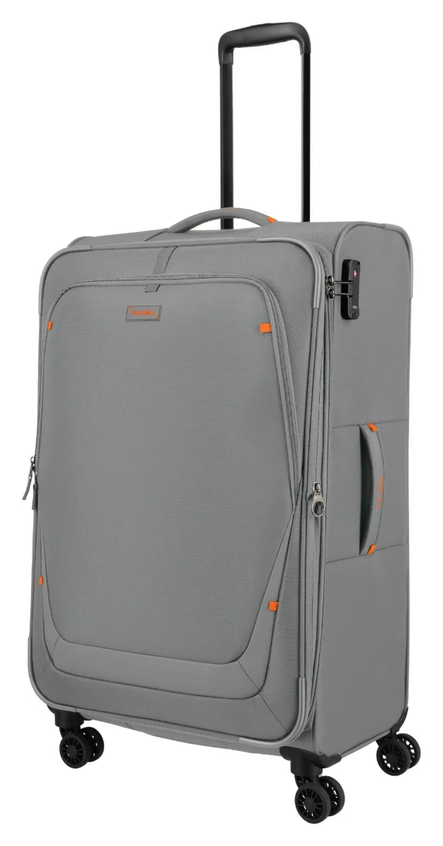 Velký textilní kufr na čtyřech kolečkách s TSA zámkem a expandérem.