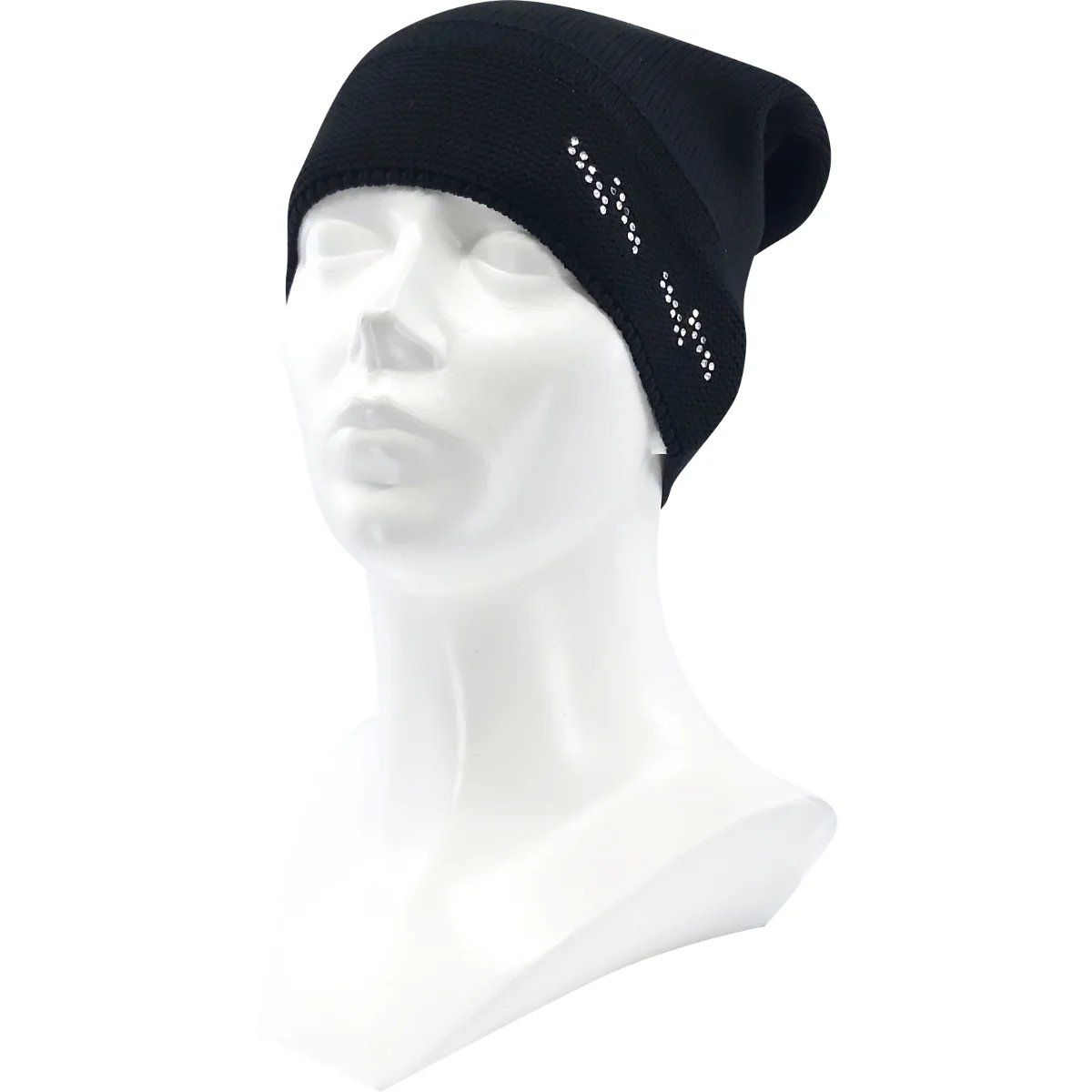 - dámsky pletený klobúk s bavlnou, zdobený kameňmi Swarovski