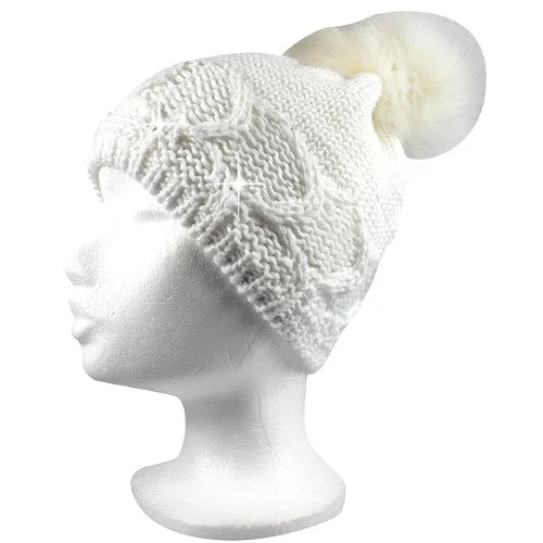 - dámska pletená čiapka s bambulou, zdobená perlami, vnútri mikroflís