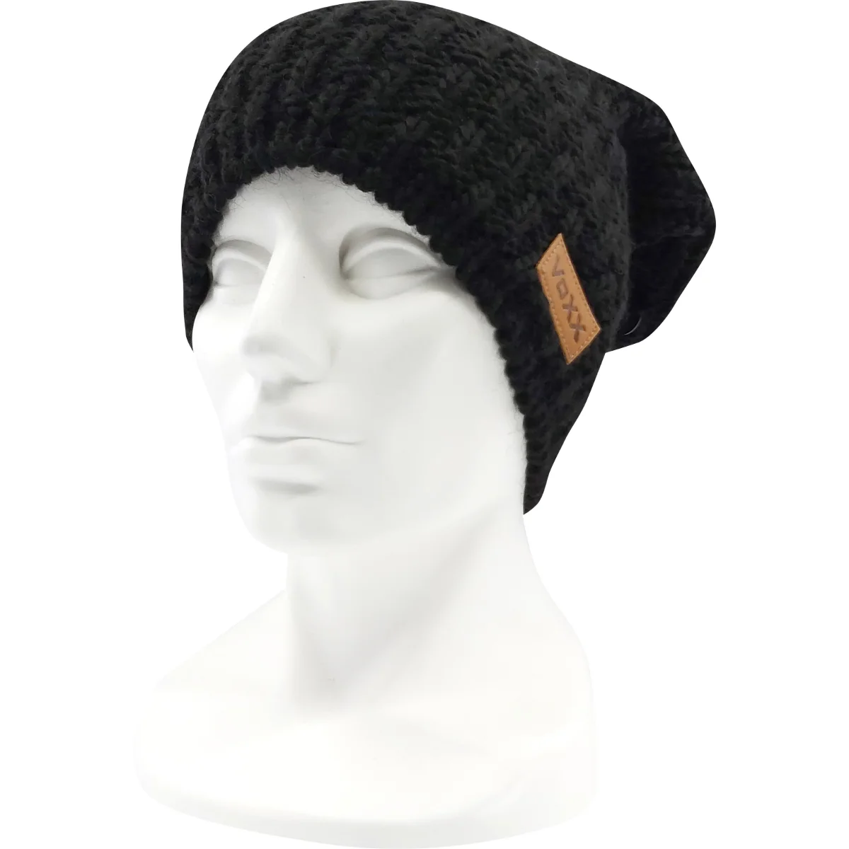 - dámska pletená čiapka z merino vlny, zdobená koženým štítkom VoXX®, vnútri mikroflís