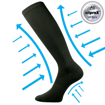 - kompresné ponožky so špeciálnym dizajnom pre vaše zdravie. Vďaka odstupňovanému masážnemu tlaku majú pozitívny vplyv na krvný obeh. Sú vhodné najmä tam, kde dochádza k prílišnému zaťaženiu dolných končatín. Antibakteriálna ochrana vďaka materiálu silproX s iónmi striebra. Pri športoch so záťažou, rýchla regenerácia svalov, zvýšený prietok krvi, väčšie okysličenie svalov. Vhodné pri dlhšom státí alebo sedení v práci, dlhšom cestovaní v rôznych dopravných prostriedkoch. Prevencia kŕčových žíl - vhodné pre nastávajúce matky a obzvlášť vhodné na použitie v zdravotníctve. Odborný posudok: kompresná trieda 1, merané oblasti: Teplotná trieda: časť chodidla - 13 mm/Hs, časť členku - 13 mm/Hs, vyššia časť členku - 11 mm/Hs, horná časť lýtka - 8 mm/Hs, teplotná trieda: A