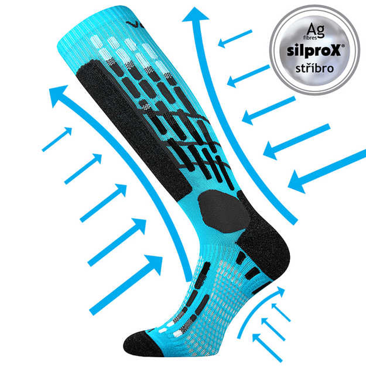 - anatomicky tvarované kompresné ponožky so špeciálnym dizajnom pre vaše zdravie. Vďaka odstupňovanému masážnemu tlaku majú pozitívny vplyv na krvný obeh. Sú vhodné najmä tam, kde dochádza k prílišnému zaťaženiu dolných končatín. Antibakteriálna ochrana s materiálom silproX s iónmi striebra. Pri športoch so záťažou, rýchlej regenerácii svalov, zvýšenom prietoku krvi, väčšom okysličení svalov, pri dlhšom státí alebo sedení. pri práci, dlhodobé cestovanie v rôznych dopravných prostriedkoch, prevencia kŕčových žíl, teplotná trieda: B