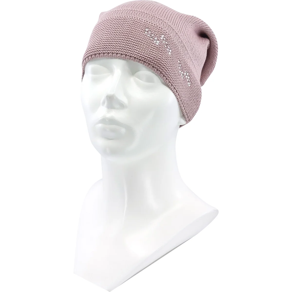 - dámsky pletený klobúk s bavlnou, zdobený kameňmi Swarovski