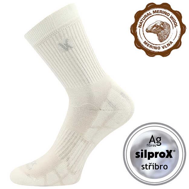 - dámske a pánske športové ponožky, zosilnené vzorované masážne chodidlo s froté zónami, špička je uzavretá reťazou, takže nikde netlačí, merino vlna je prirodzene antibakteriálna a je doplnená aj materiálom silproX s iónmi striebra, extra voľný lem neobtiahne chodidlo a neškrtí, teplotná trieda B-C